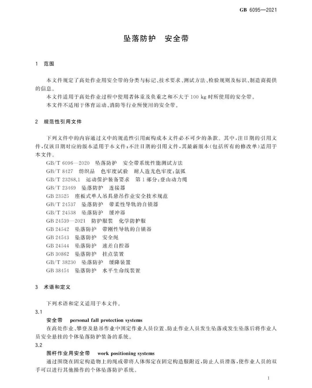 新版安全帶標準將于2022年9月1日正式實施 新國標!GB 6095-2021《墜落防護 安全帶》,2022年9月1日起實施!