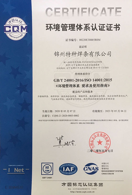 Certification Category:GB/T 24001-2016/ISO 14001:2015 《環(huán)境管理體系 要求及使用指南